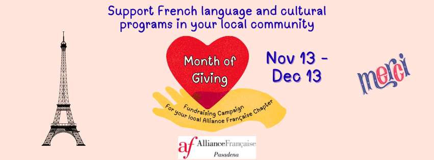 The Alliance Française de Pasadena offers cultural events which allows its members to be in contact with the French language and the French-speaking cultures. We teach French to all age groups. It is the opportunity to join a community of Francophones and Francophiles and to practice French outside the classroom.
